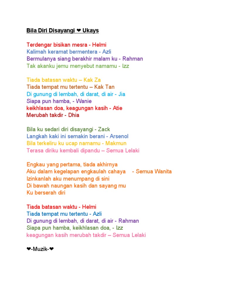 Bila terkeliru ku ucap namamu. Up to 24 cash back Download Lagu Malaysia Uks Bila Diri Disayangi - Bila diri disayangi segalanya indah belaka. Aku dalam kegelapan engkaulah cahaya.